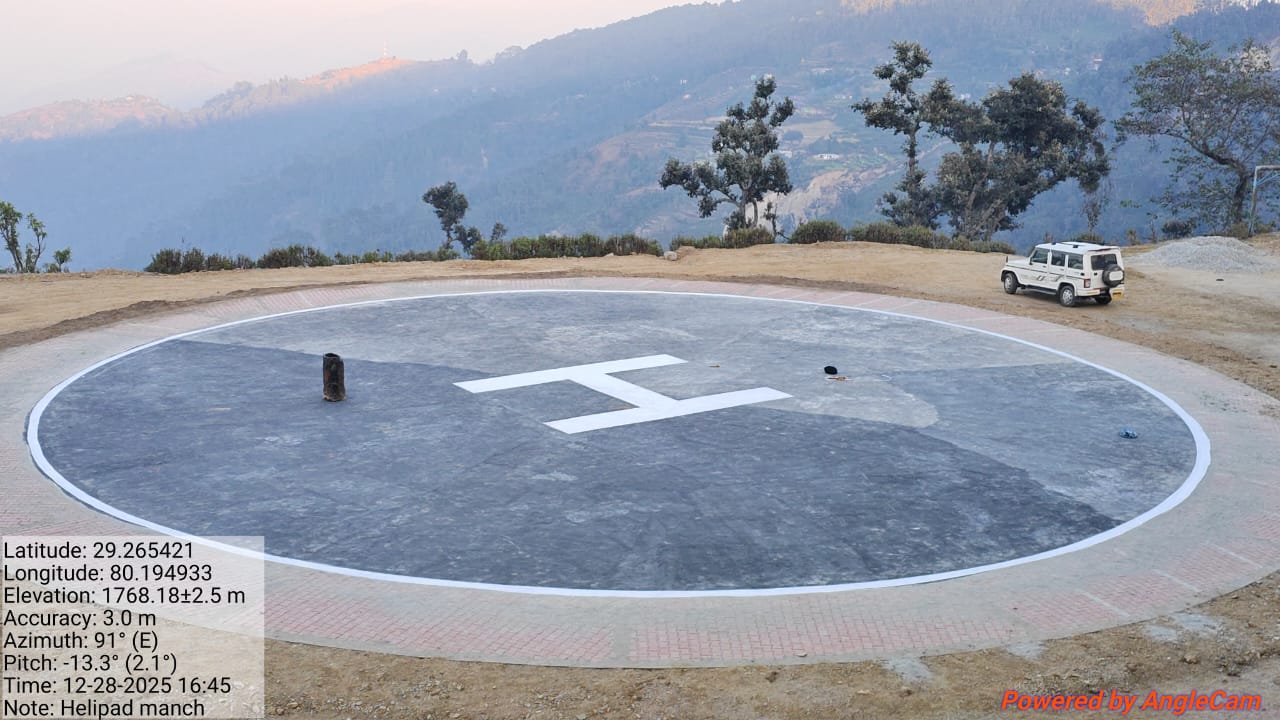 जनपद चम्पावत के सीमांत एवं दुर्गम क्षेत्रों में सुरक्षा, स्वास्थ्य और तात्कालिक सेवाओं की पहुँच सुनिश्चित करने के उद्देश्य से माननीय मुख्यमंत्री श्री पुष्कर सिंह धामी के निर्देशानुसार मंच में अत्याधुनिक हेलीपैड का निर्माण कार्य सफलतापूर्वक पूरा कर लिया गया है।