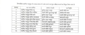 निम्नांकित उ०नि० ना०पु० को तत्काल प्रभाव से उनके नाम के सम्मुख अंकित स्थानों पर नियुक्त किया जाता है।